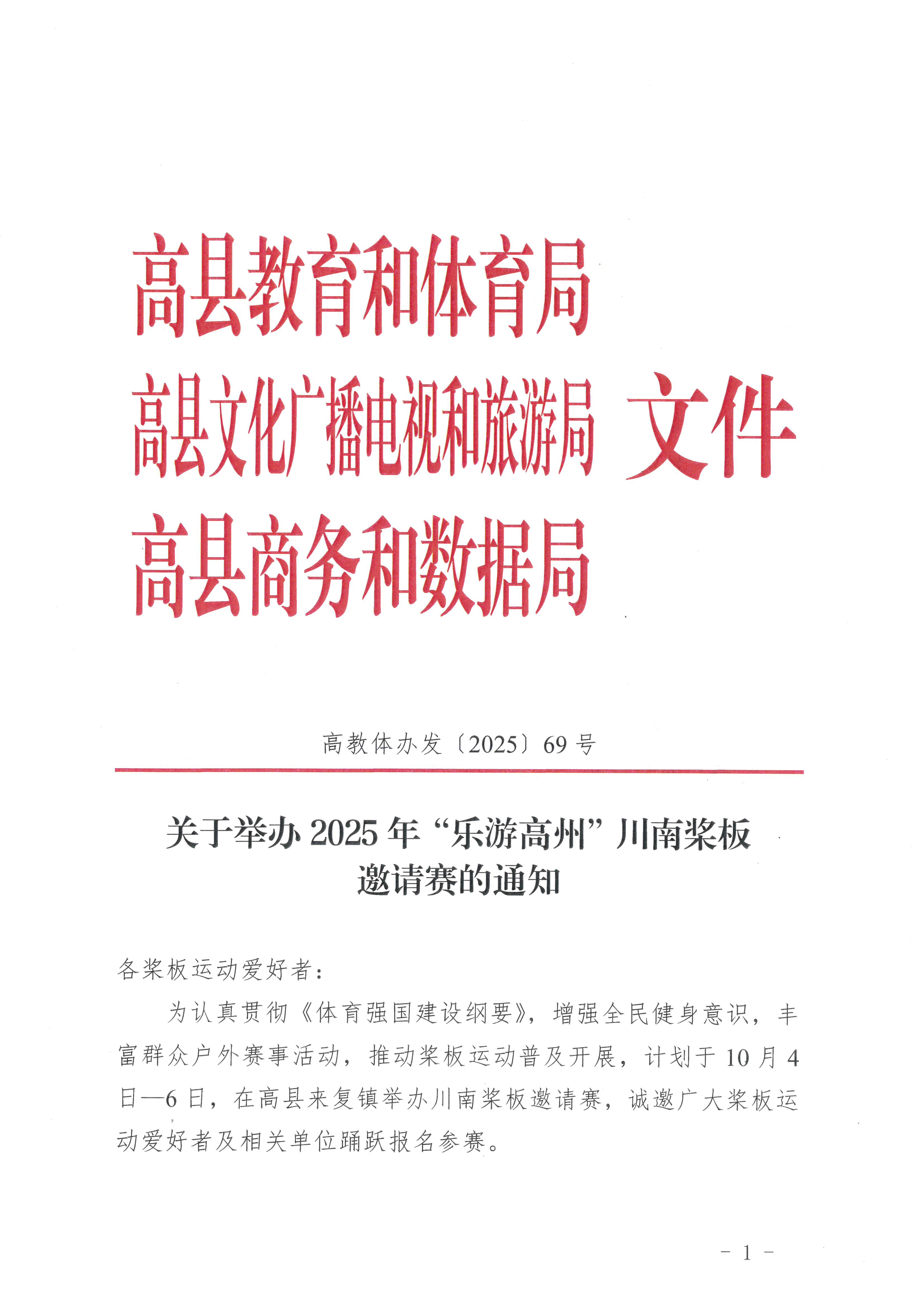 关于举办2025年“乐游高州”川南桨板邀请赛的通知